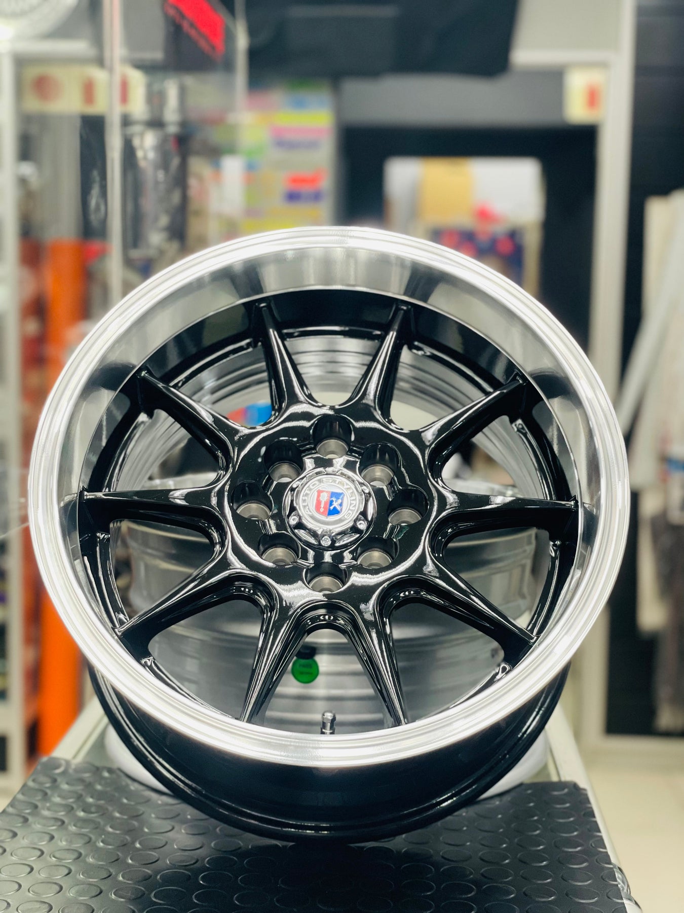 15” AS- 7166 4/100 4/114 gloss black wheels